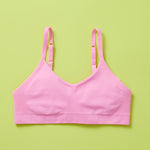 BACK AND BETTER THAN EVER!  Our Tulip Bra is updated with softer and slightly thicker fabric. We added gentle ruching to allow room and support for development and growing girls. The Tulip bra is a fantastic option for all girls in search of an everyday, blissfully soft and comfortable addition to their top drawers. Like any seamless bra we make, they're created to be so comfortable you'll forget you have it on - it's like wearing air! When in doubt, please size up.