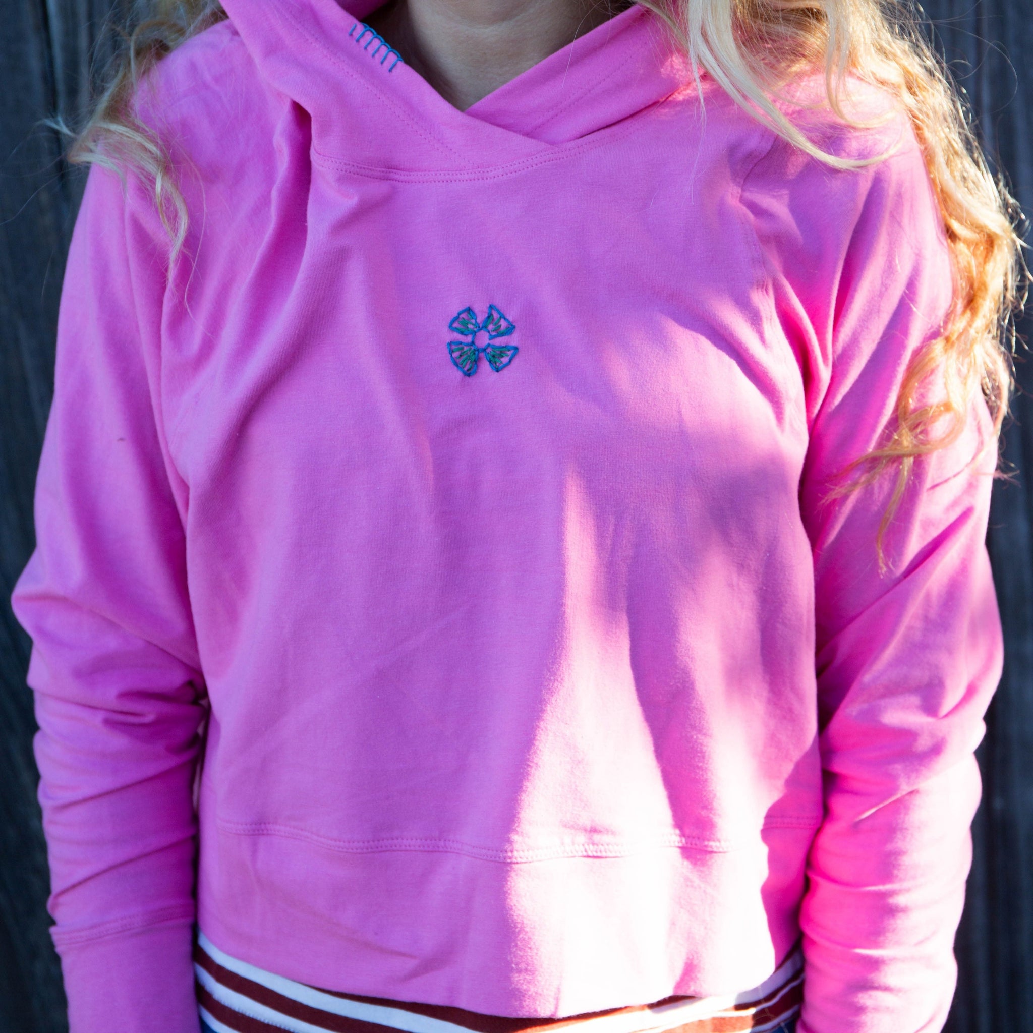 Downtown Hoodie: Soft Cotton, Effortless Style. Designed with a cross-front hood for subtle flair, it falls just below the navel, hitting the hip for a relaxed, effortless fit. Each piece in our lounge collection embodies chic, timeless style—essentials you'll reach for all cozy season long. Made with pride in the USA, in colors thoughtfully chosen to mix and match seamlessly. We hope you enjoy them as much as we loved creating them for you.